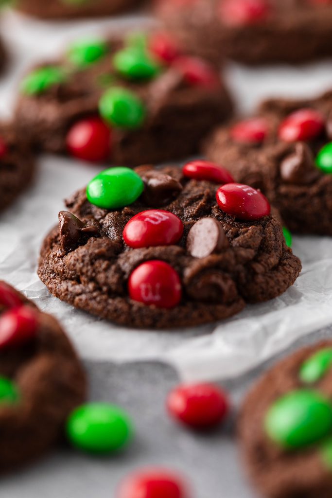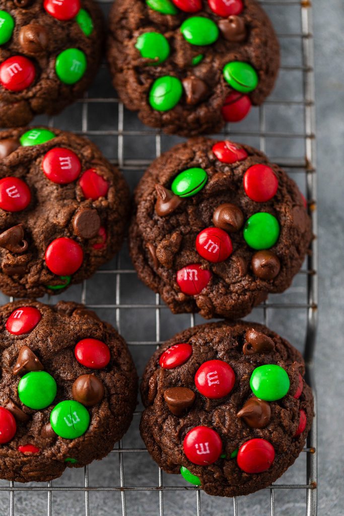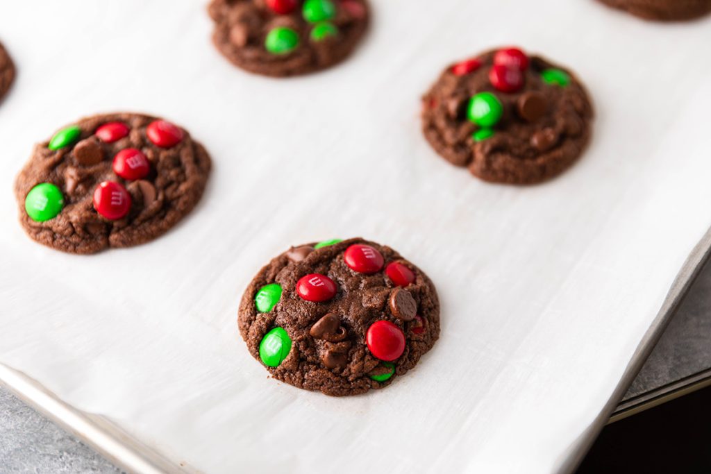 Double Chocolate M&M Cookies – Rich chocolate cookies loaded with festive M&M’s and chocolate chips.